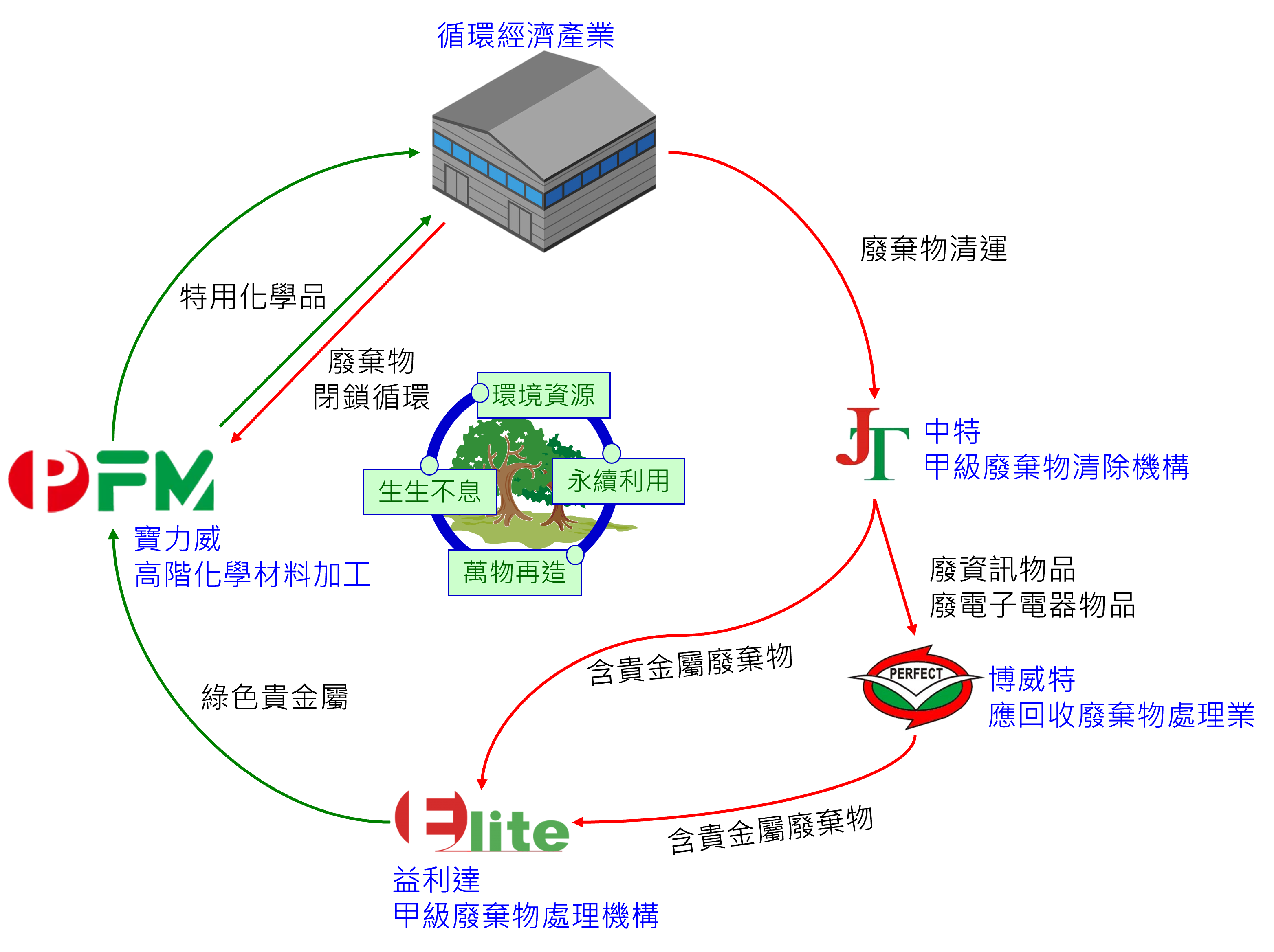 寶力威精細材料股份有限公司成立於2013年,規劃以事業體內「益利達資源科技股份有限公司」所提煉出的高純度稀貴金屬,研發製作客戶製程所使用的特用化學品,從回收、清除、處理到高值化產品開發,成為一貫化、系統化的循環經濟供應鏈。
